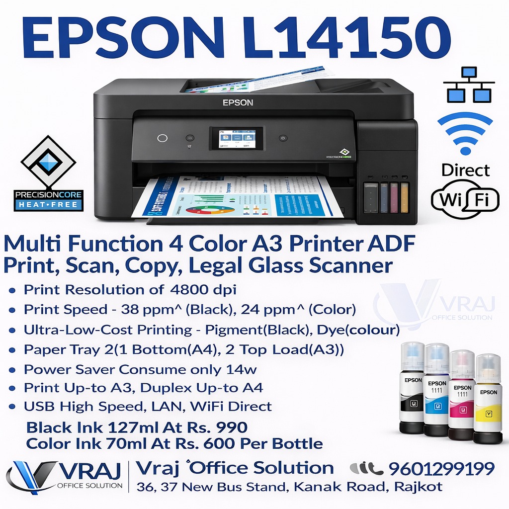 Vraj Office Solutions Rajkot offers Canon laser printers designed for fast and efficient office printing. These printers are ideal for businesses that require sharp text quality and reliable daily performance.