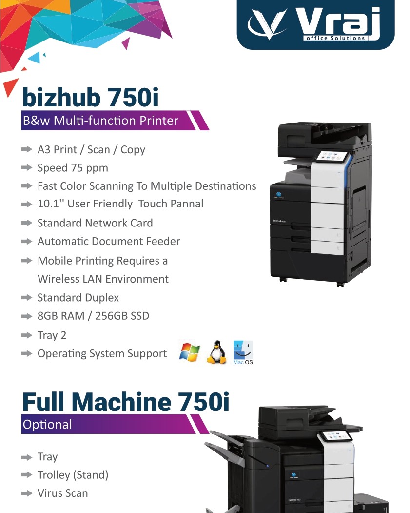 Vraj Office Solutions provides reliable colour Xerox rental solutions using Konica Minolta machines in Jamnagar.