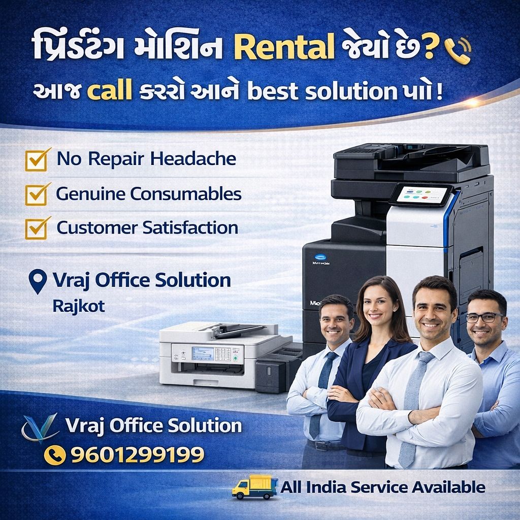 Printer rental service in Surendranagar offers structured and reliable printing solutions for businesses, schools, colleges, and government offices. High-performance printers are available under flexible rental agreements.